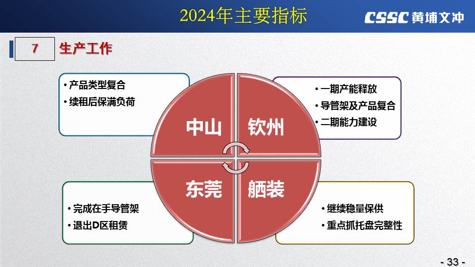 黃埔文沖公司羅兵總經(jīng)理指出,公司在過(guò)去的一年所取得的成績(jī)不容易,指標(biāo)基本完成,海外訂單有實(shí)質(zhì)性突破,國(guó)內(nèi)訂單承接情況不錯(cuò),管理團(tuán)隊(duì)精氣神不錯(cuò)。面對(duì)當(dāng)前的形勢(shì)機(jī)遇,羅總指出公司的未來(lái)發(fā)展大有希望!羅總要求全體干部員工要繼續(xù)保持高昂的斗志和滿滿的信心,繼續(xù)奮斗,并就公司2024年工作作了以下重要指示: