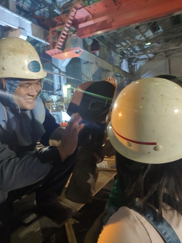 李康工作幾年,一步步從一線工人做到如今的工班代班,家里的生活慢慢改善。但驕傲之余,李康的妻子又用心疼的語氣說著,他回家時手上常常有燙傷的疤,閨女看見他上班就哭,等他下班的時候就一直念叨。到了現(xiàn)場,寡言的男人從見到家人開始,臉上就一直掛著笑意,還在廠房外摘下安全帽逗女兒開心。在李康的目送中,妻子走遠些才紅著眼眶說:“他真的很累,為了工作也很拼?!?/span>