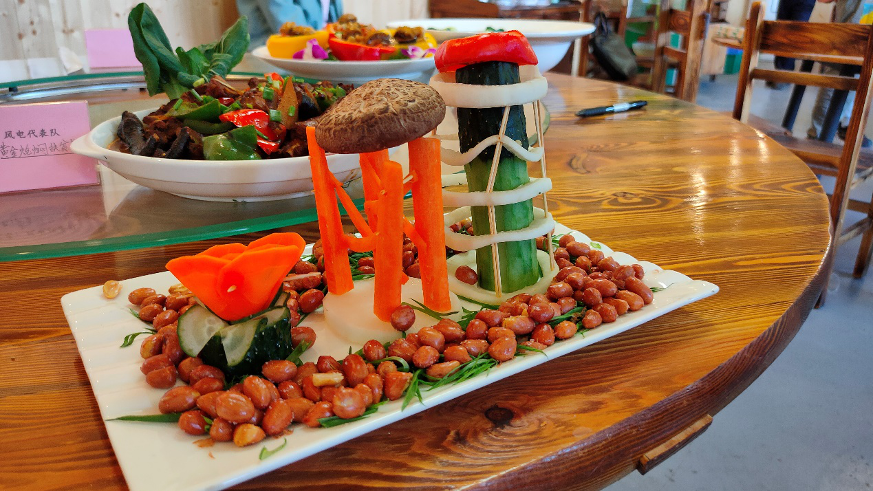 ▲菜品中還有我們“風(fēng)電導(dǎo)管架”“套籠”等產(chǎn)品的身影,擺盤雕刻,創(chuàng)意十足,果然高手在民間。
