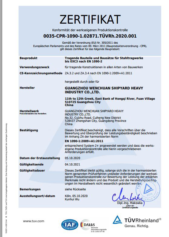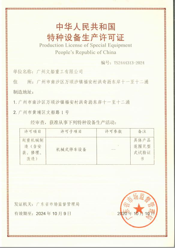 2020年10月9日,經(jīng)廣東省市場(chǎng)監(jiān)督管理局審批發(fā)證,公司成功獲取機(jī)械式停車設(shè)備制造(含安裝、修理、改造)資質(zhì)證書(shū);2020年10月15日,經(jīng)歐盟認(rèn)證機(jī)構(gòu)審批,公司成功獲取EN1090、ISO3834體系認(rèn)證證書(shū)。
