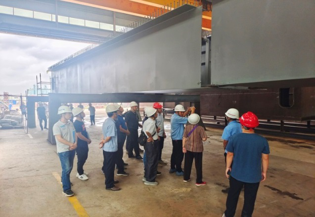 會(huì)前,公司副總經(jīng)理劉鋒陪同專家組及各單位代表們前往生產(chǎn)車間進(jìn)行實(shí)地考察指導(dǎo),一行人對(duì)鋼梁首件工程進(jìn)行了現(xiàn)場(chǎng)驗(yàn)收,并查看了現(xiàn)場(chǎng)部分單元件及橋梁分段的制作質(zhì)量,過(guò)程中大家對(duì)公司鋼結(jié)構(gòu)的施工質(zhì)量給予了高度認(rèn)可。